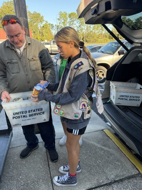 Olivia in our 8th grade and her Girl Scout troop collected food for our parish Outreach Program. We are both grateful to and proud of Olivia and her troop! October 31, 2025