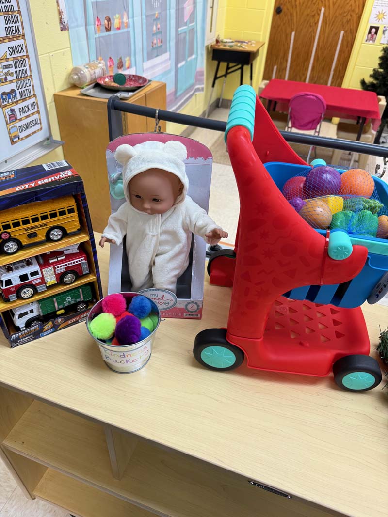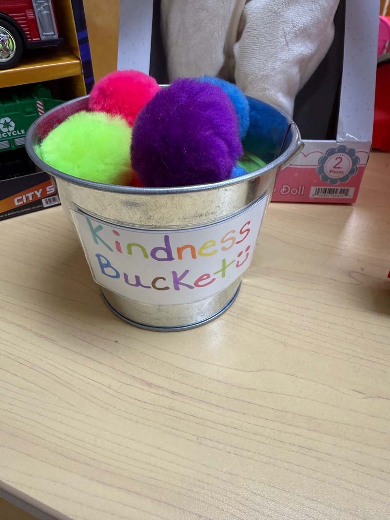 Two weeks ago, I challenged the children to add a pom pom to our Kindness Bucket each time we saw an act of kindness. Instead of earning something for themselves, they chose to earn toys to donate to our Sleigh (Project Share). They were so excited—and today they filled the bucket! They were so proud knowing they earned toys for other children who may not have any this year.